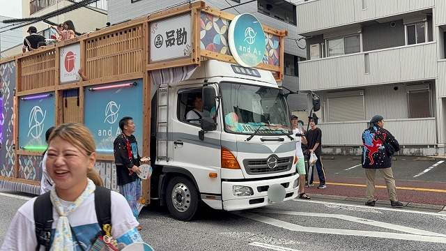 本祭1日目、地方車を運転し、1か所目の演舞会場「菜園場競演場」に到着。