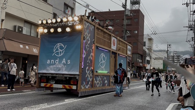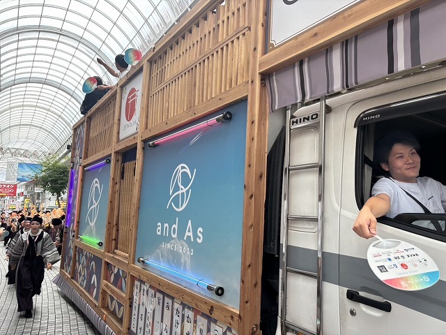 最終日の全国大会、帯屋町ではノリノリで運転席からうちわを振って沿道の方にうちわを配ってました(笑)