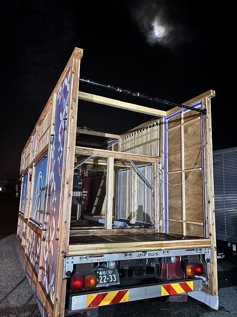 プロの方にお任せして僕は待っていただけですが、さっきまで明かりが灯って爆音を響かせていた地方車が、発電機と骨組みだけになってしまいました。
