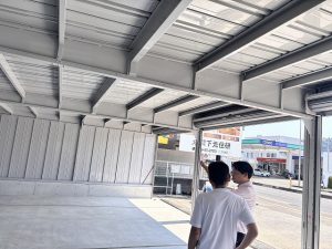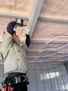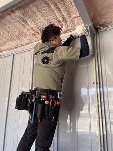 アングルは屋根を一部貫通させて取り付けていただきました。