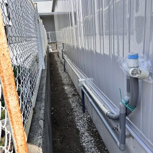 業務用エアコンの室外機が3台来ますので、空調屋さんと打ち合わせした位置まで配管して指定の電源線を入線しておきます。