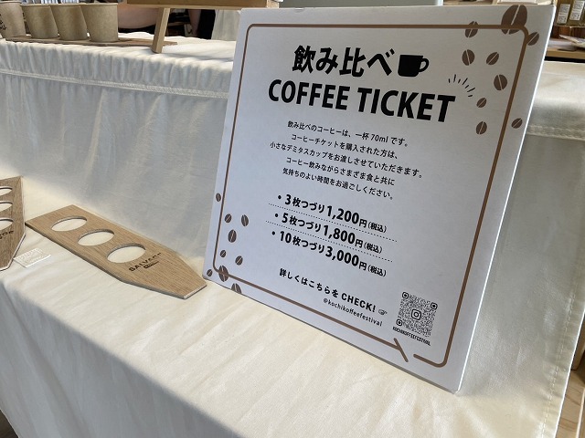 なんと珈琲フェスティバルでは、「飲み比べCOFFEE TICKET」を