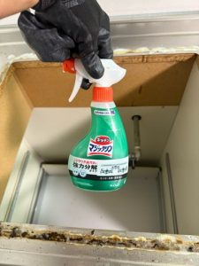 私がビルトインコンロ取替工事を行う際に必須のアイテム、”キッチンマジックリン”。1個350円ほどですが、これさえあれば大体の油汚れは落とせるコスパ良の商品、個人的にオススメです。