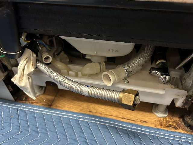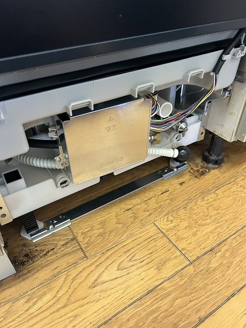 下パネルを取外せば本体下部の内部が見え、給排水管が出てきました。