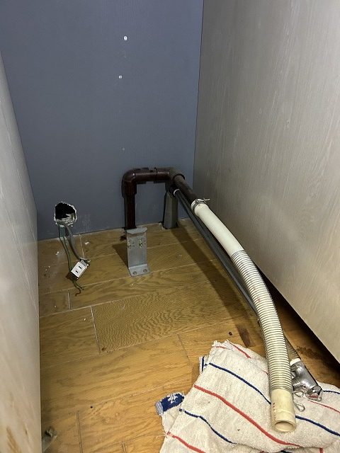 止水栓を閉めて、給水・排水ホースを取外します。