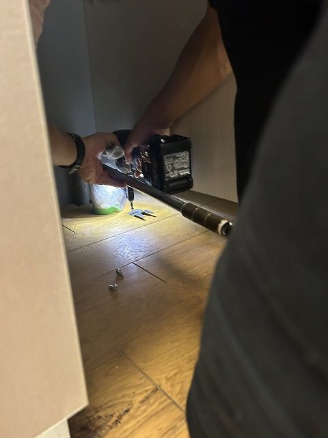 足の固定金具をしっかり床に取付ます。