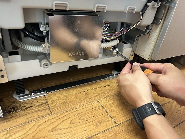まず最初に食洗機本体の足の高さを調整します。