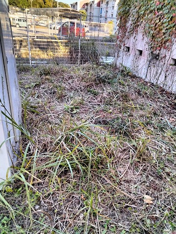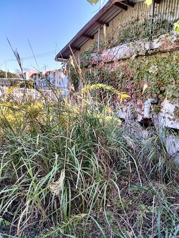 建物の裏側は草が伸び放題になっておりジャングル状態です。