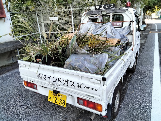 ガスボンベ庫裏の草刈りとゴミの掃除をしてきました。