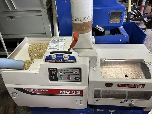 籾すり機の次は、玄米を計量するため自動選別計量機へ。