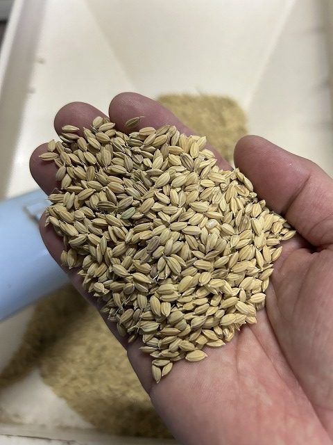 乾燥が終われば玄米にするため、乾燥した籾を籾すり機へ送ります。