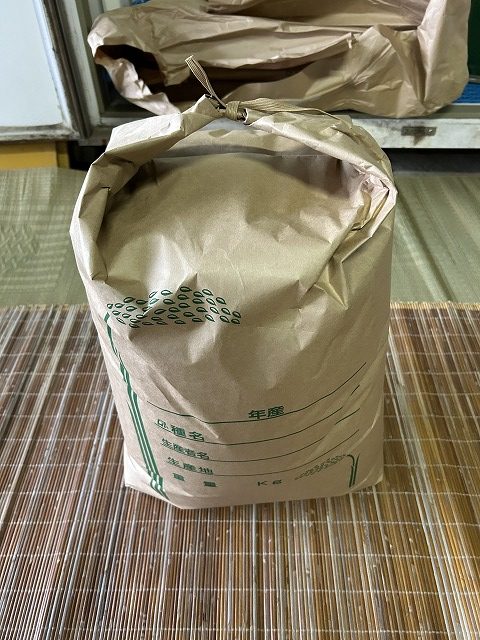 最後に米袋の口を結び、30kgの米袋の完成です。