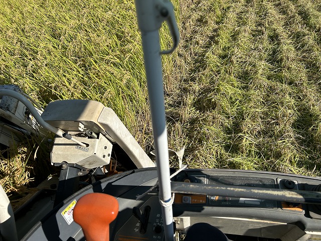 私は手前の少し狭いエリアの田んぼを、父が奥の広いエリアを刈りました。