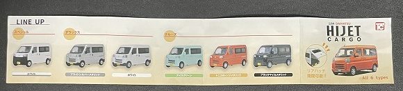 商品名は「1/64 DAIHATSU HIJET CARGO」 6色展開で一回400円です。