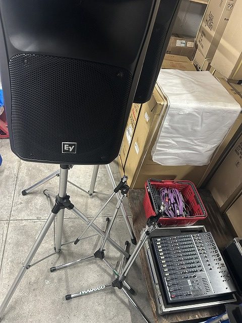 お楽しみ抽選会を盛り上げる音響機材も準備ができました。