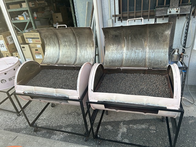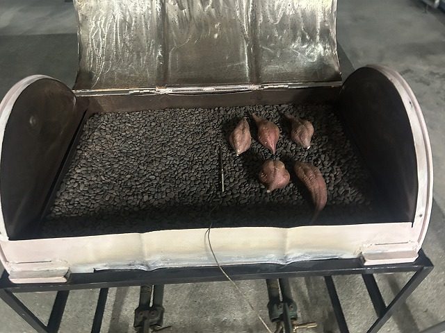 自家製焼き芋機の手入れをして芋の試し焼きをしました。