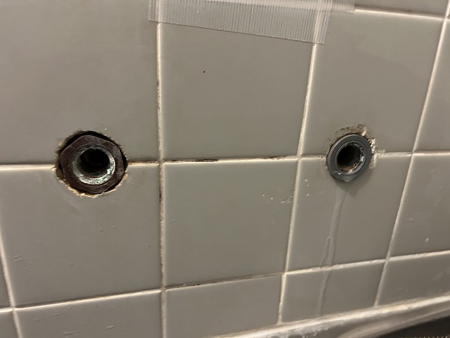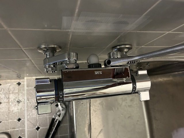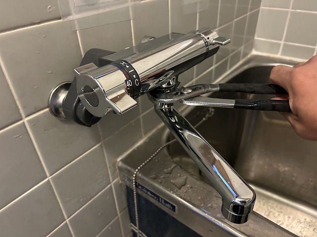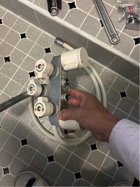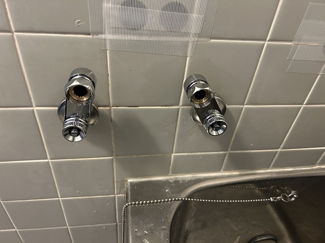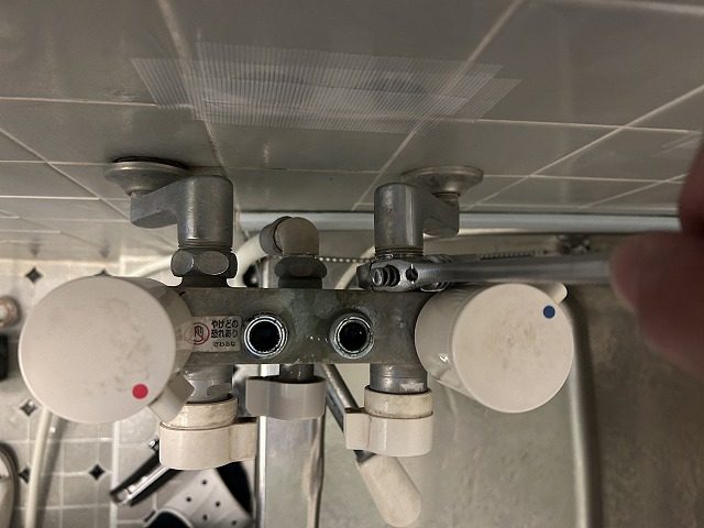 本体と接続されている、水側・湯側のソケットを緩めてソケットおよび混合水栓本体を取り外します。