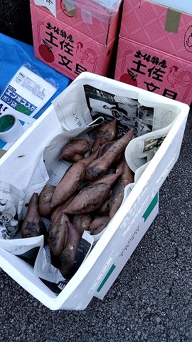 今年のおイモは安納芋!甘いおイモは今年も人気です。焼きたてのおイモを皆様にお渡しすることができました。