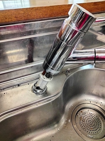 今回は、20年前から使用されている台所水栓の蛇口から水漏れがあり、お取換えご依頼いただきました。