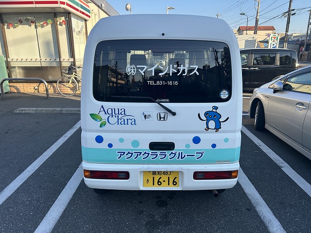 アクアクララのステッカーを、これでもかというくらい全面に貼られているアクアクララ号です!