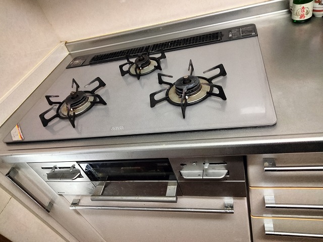 今回は、レンジフードといっしょに10年以上ご使用のコンロもお取り換えとなります。