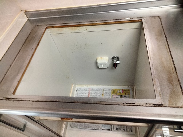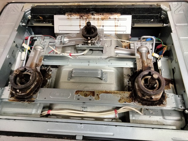 内部に吹きこぼしによる汚れと腐食がありました。