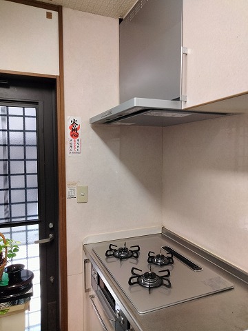 新しいレンジフードとのコンビで全体的にキッチンが明るくなりました。お客さまにも喜んでいただけました。
