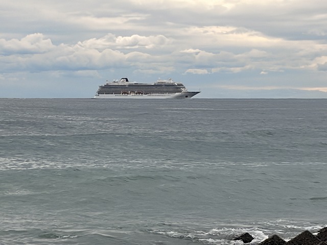 沖の方には、でっかい豪華客船が高知新港に向かっていました。