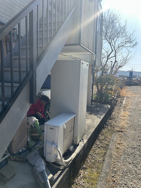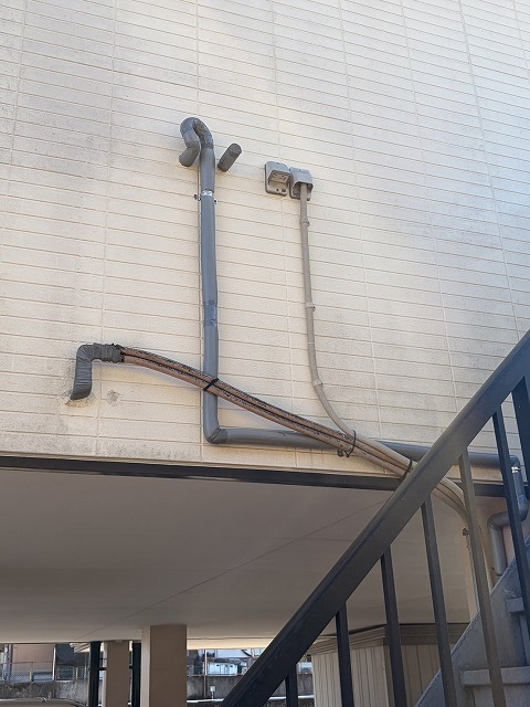 エコキュートになり、配管を下に持っていくためにグイッと曲げて配管されていました。