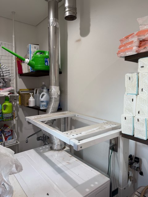 手前の方が今回取り替える分の排気筒になりますので、電源・アース・ガスコード・排気筒を外し、専用台と本体を固定しているネジを外していきます。