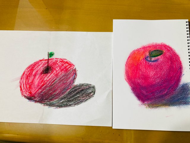 まずはこの絵。下の子が描いたんですが、左が普通のクレヨン。これも上手に描けていますが、右のアートクレヨンで描いた方の立体感がエゲツない! 柴崎ismが炸裂しています!