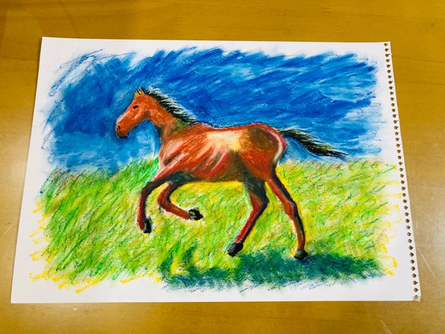 今年の干支のお馬さん。発色良く青や緑が鮮やかに描けます。緑なんかは黄色に青色を重ねて、指で伸ばしても表現出来ますのでめちゃくちゃ楽しいです。