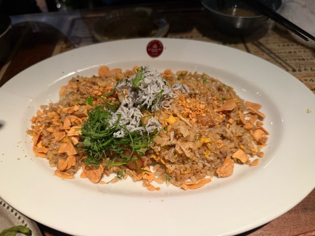 そしてラスト前はガーリックチャーハン、ガーリックが3割ぐらい占めていますが、味付けが独特なのか、するすると胃に入っていきました。