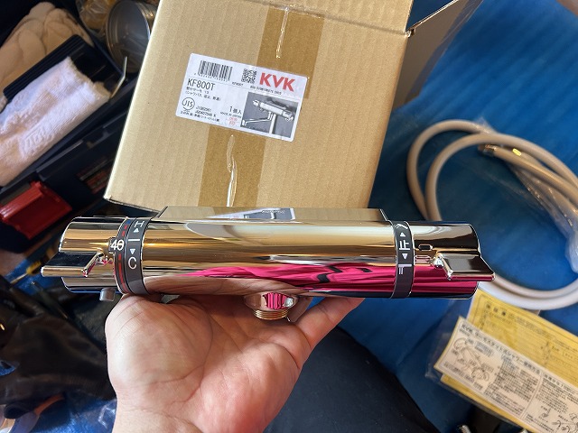 新しい混合水栓は、KVK製のサーモスタット付シャワー混合水栓です!