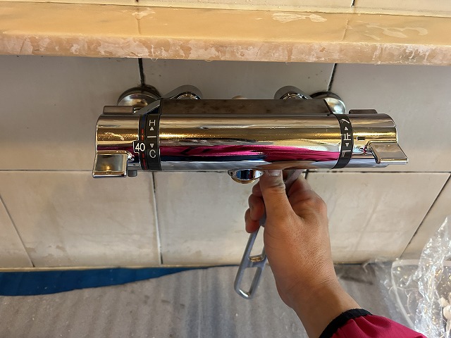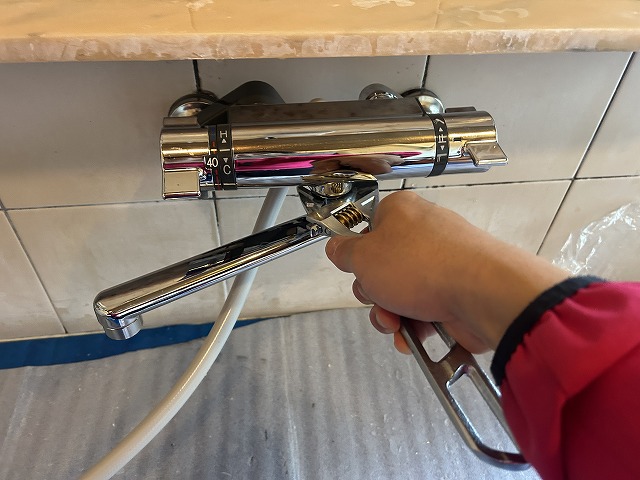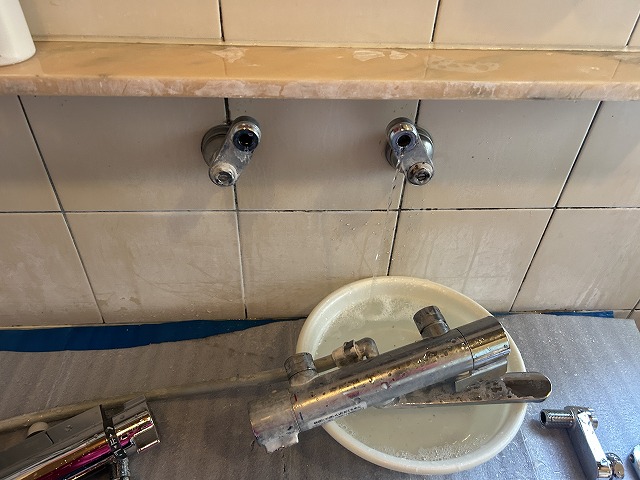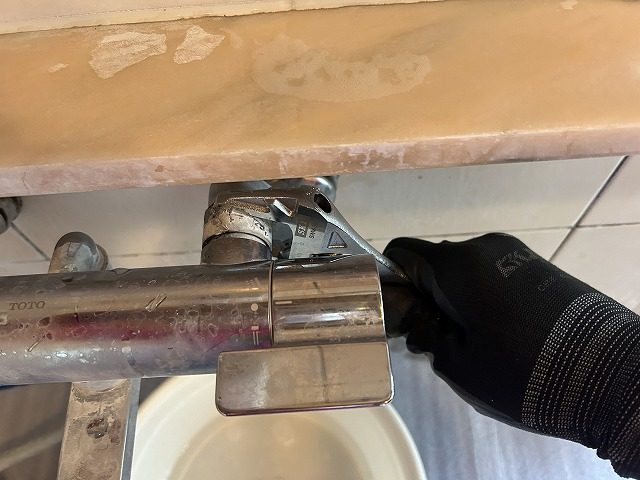 台所の混合水栓では問題なくお湯が出ていましたので、給湯器は正常で、お風呂場の混合水栓に問題があることをお客様にお伝えしました。