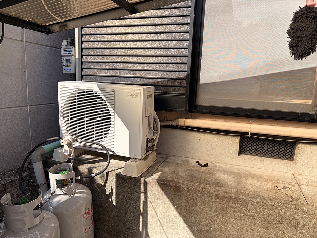 1995年製のサンヨーのエアコンです。僕が2歳の頃のエアコンです(笑)
