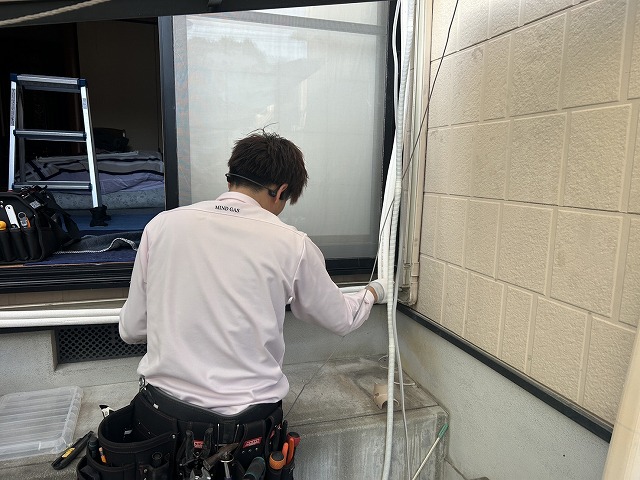 室内機は掛け終わり、後は外の作業に移ります。