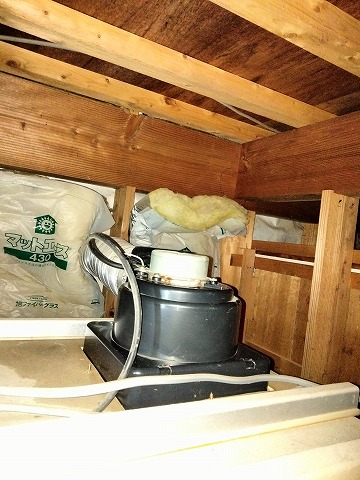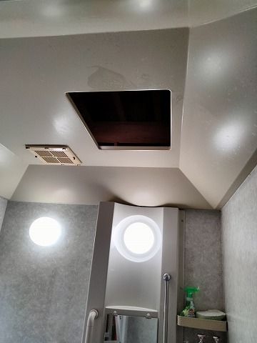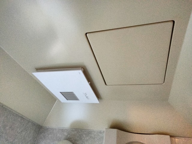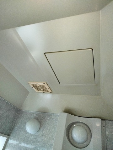 換気扇から天井埋め込み型の浴室暖房乾燥機へ取り換えです。