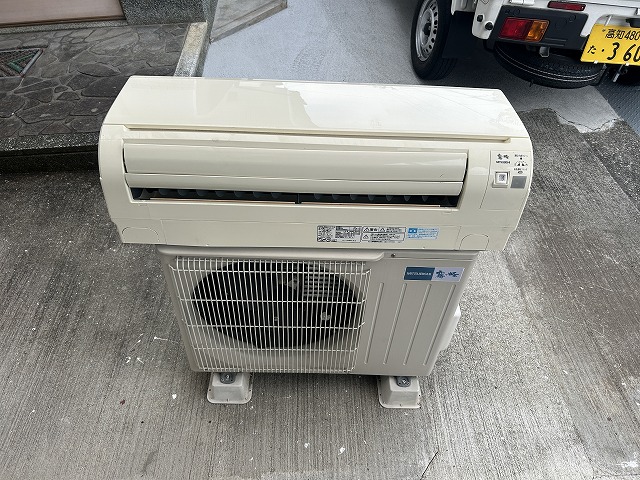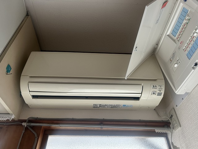 取外しを行うエアコンは、2012年製の三菱 霧ヶ峰で、台所の勝手口上部に設置されていました。