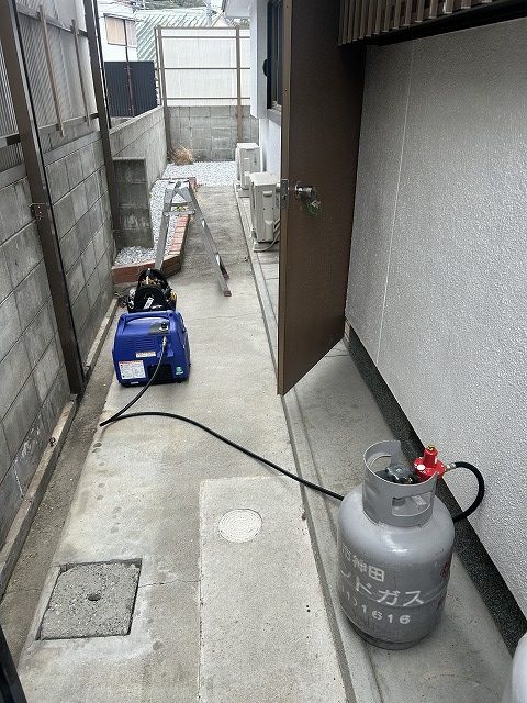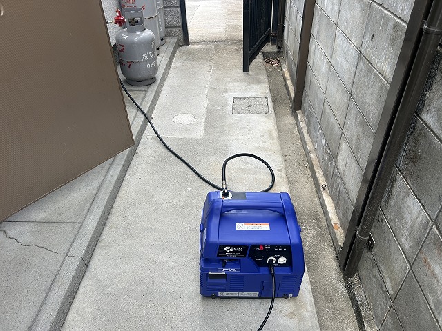 しかし前の入居者さんが退居され停電となっていましたので、ここでガス発電機の登場です!