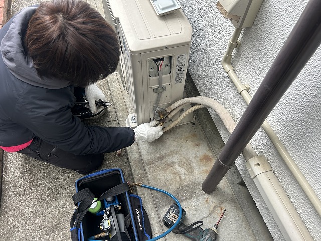 マインドガスがガス供給をさせて頂いています借家の故障したエアコンを、次の入居者が決まるまでに取外して欲しいと、お客様からご依頼頂きました。
