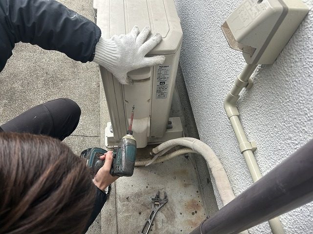 入居者が決まれば入居までに新しいエアコンを取付けする予定ですが、一旦は取外しを行い室内の修繕や美装等をされるとのことでした。
