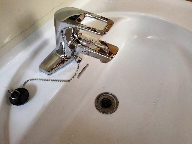 洗面台のツーホールシングルレバー混合水栓を交換しました。