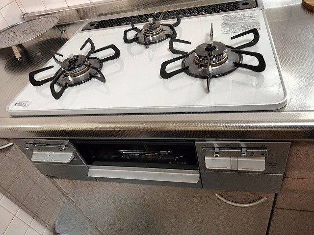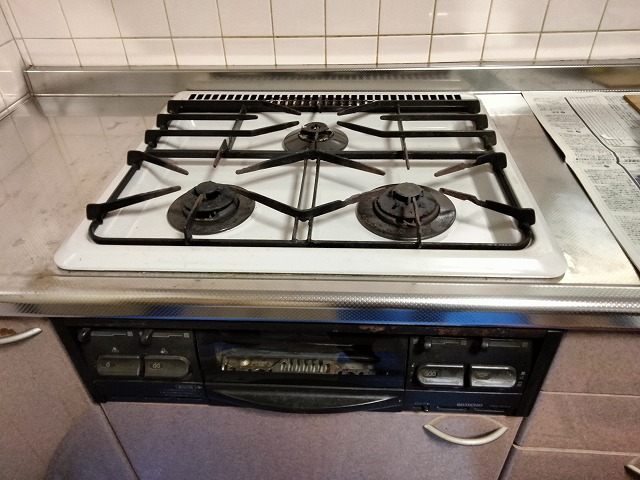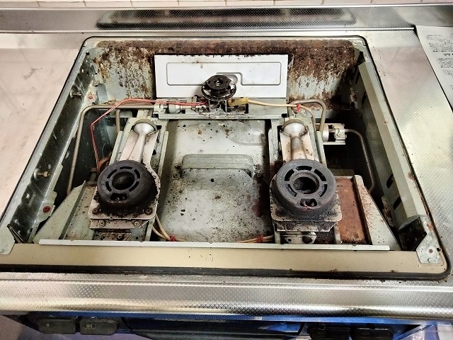 20年前に設置されたビルトインコンロです。しばらく使用していなかったようですが、この度レンジフードとごいっしょに新しくお取換えしていただきました。