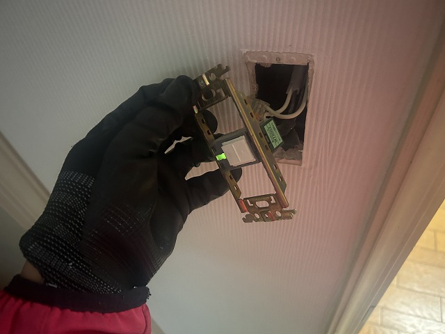 取付枠、プレート、ハンドルの順に組み上げれば、壁スイッチの修理は完了です!