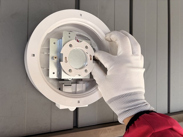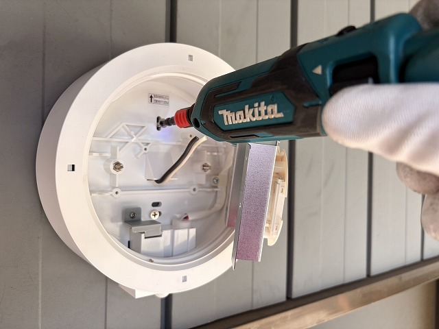電線の接続と本体の固定が終わり、LEDランプを取り付ける部分を固定します。