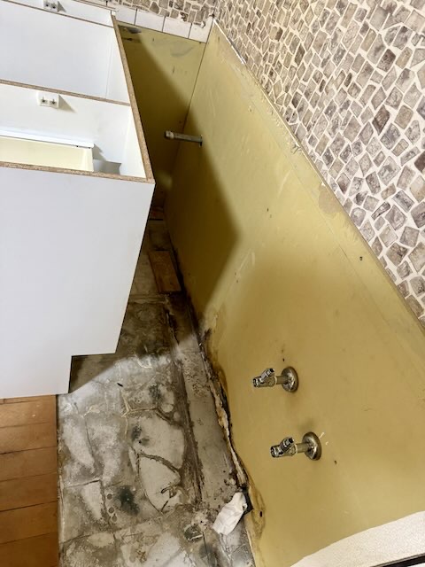 ガス栓を外して一度キャップ止め(写真上部分)、湯水の配管もキッチンから外します。