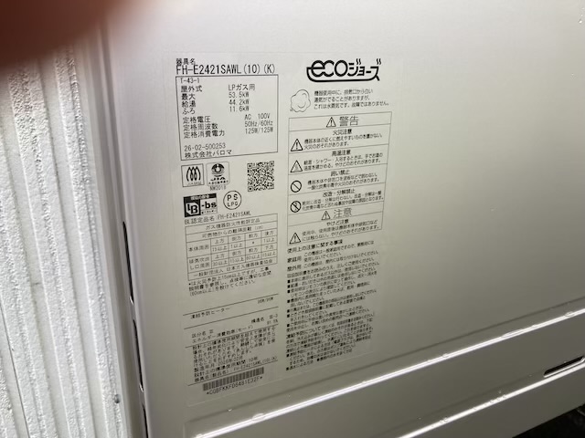 設置したのはパロマのエコジョーズオート給湯器FH-E2421SAWLです。