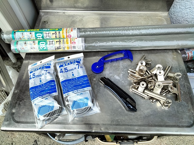 先にホームセンターで材料を購入してきました。アミはシルバーの一般的なものです。