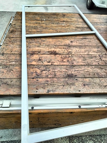 いったん会社にサッシを持ち帰ってから作業となります。